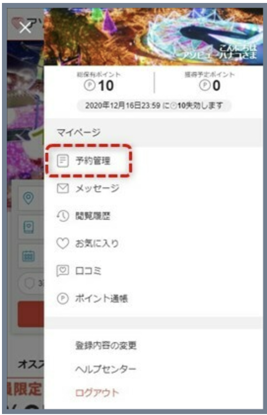 チケットは、アプリの場合はマイページ内の「おでかけ」から、ブラウザの場合はマイページ内の「予約管理」より確認・表示いただけます。