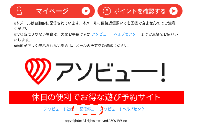 また、ご予約・ご購入について、ポイントの有効期限のお知らせ、ご利用規約内容変更などの重要なメールは、メールマガジン配信可否問わず、お送りさせていただいております。