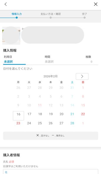 ▼Step2:券種や枚数、購入者情報・支払い方法を入力してください。