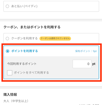 ※ポイント入力後、支払い情報欄で割引が適用されていることをご確認ください。